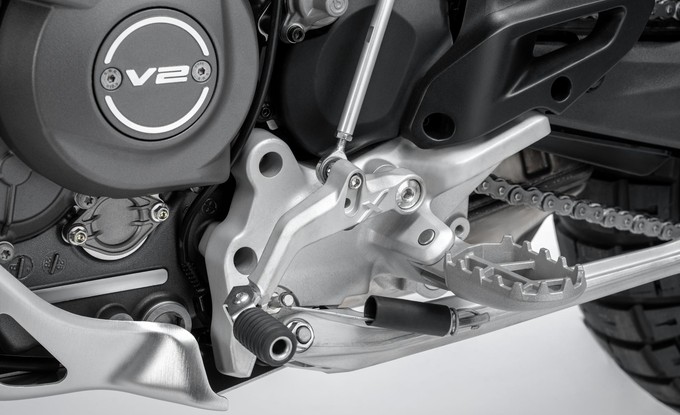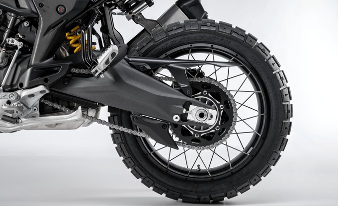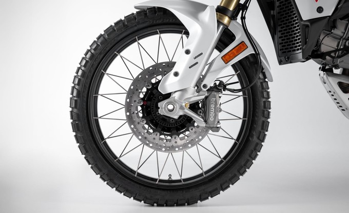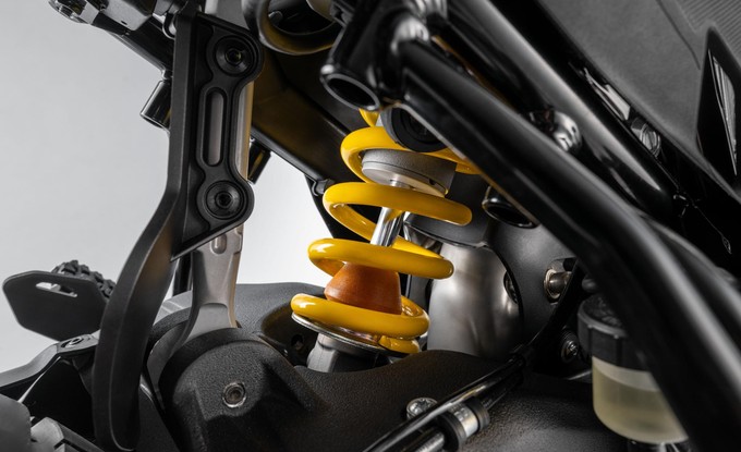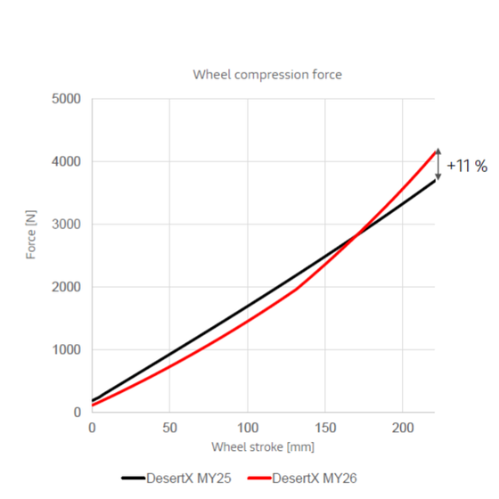 Nejvýraznější inovací je zadní pérování s novým systémem full floater, který zajišťuje progresivní chování. Na rozdíl od tradičních odpružení, kde síla roste lineárně s kompresí, tento systém nabízí jemnější reakci na začátku zdvihu a postupně vyšší podporu při větších silách. Nový DesertX tak lépe pohlcuje nerovnosti, aniž by ztratil kontrolu, a poskytuje pohodlí a stabilitu na všech typech terénu.