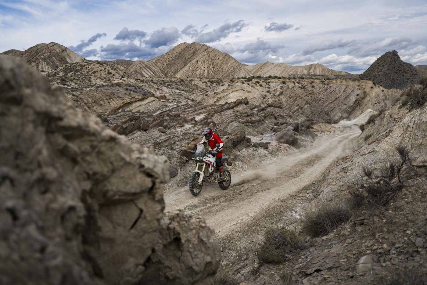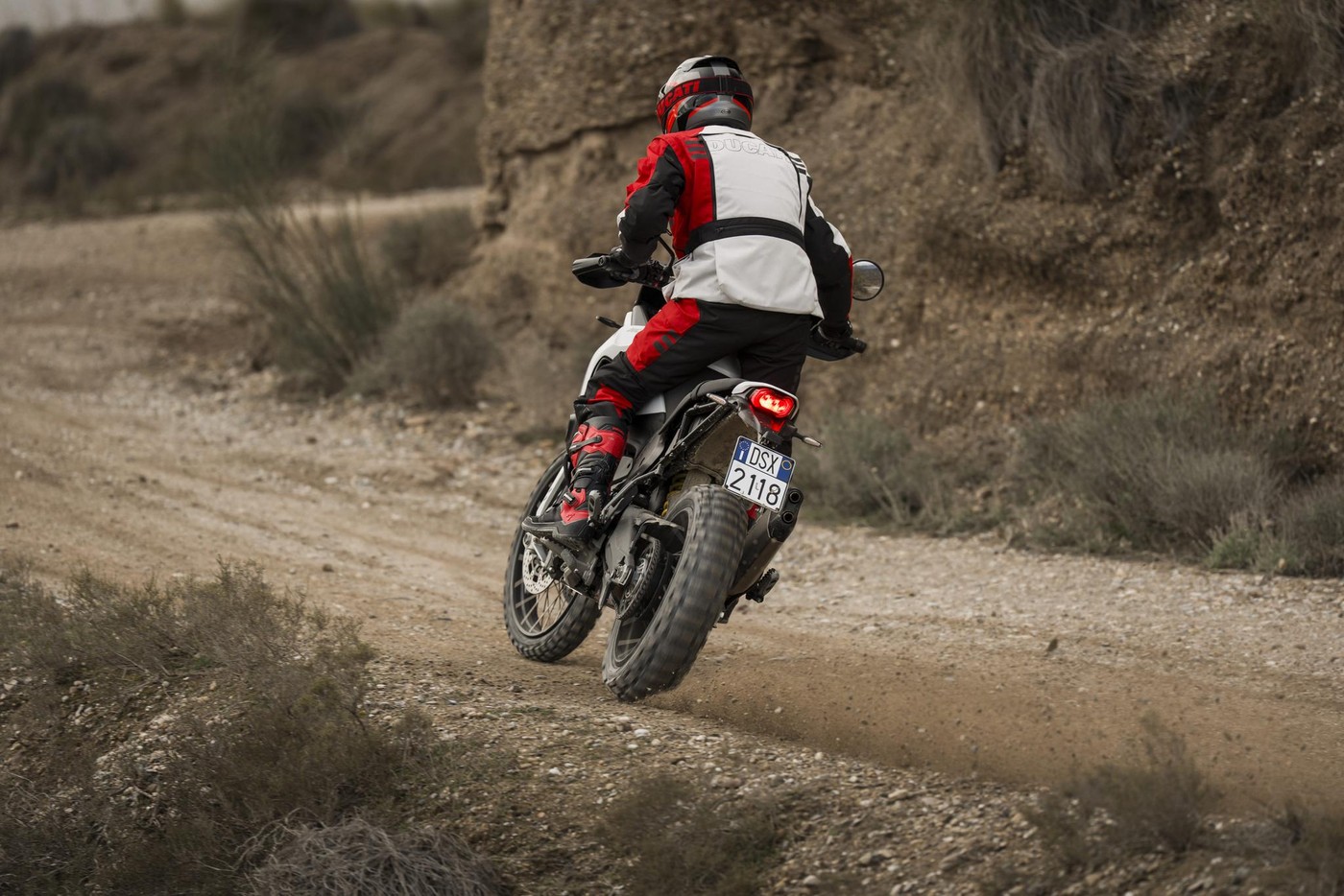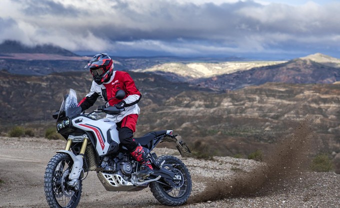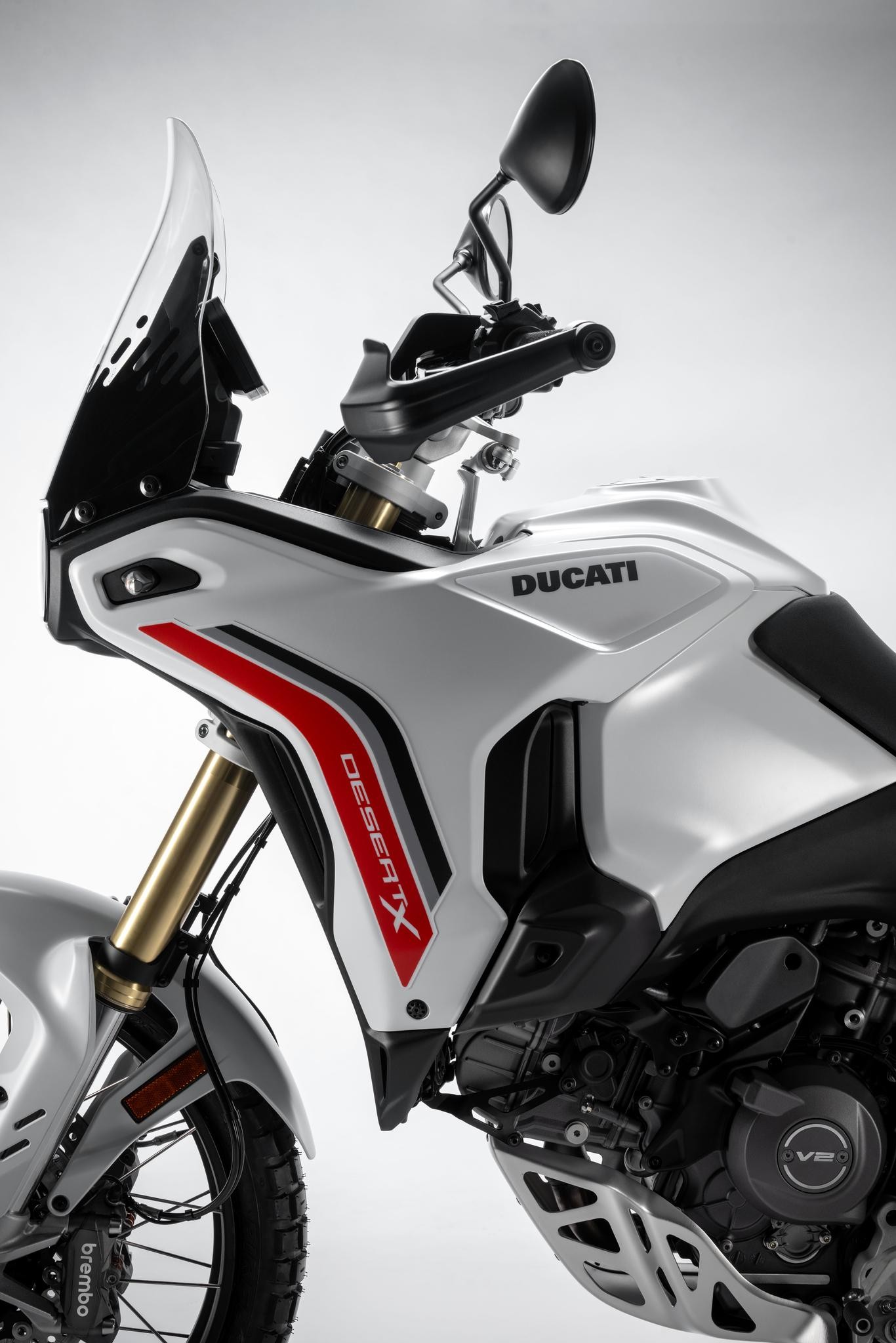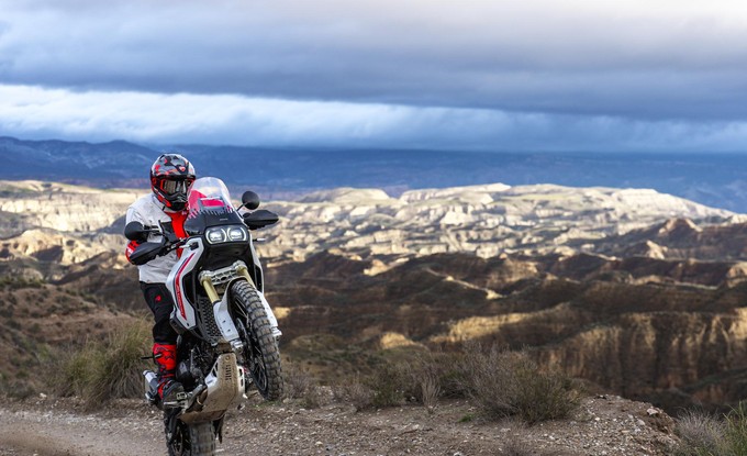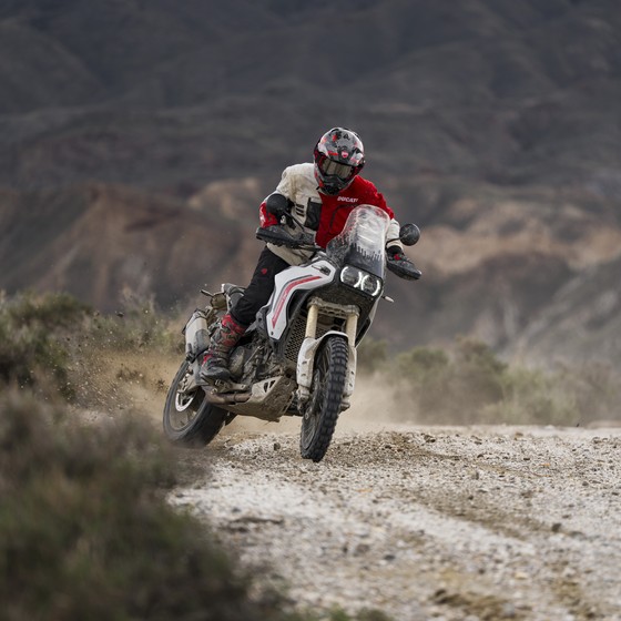 Nový DesertX vznikl z intenzivního testování v terénu a úzké spolupráce designérů Centro Stile Ducati s týmem vývoje. Každá zkušenost se promítla do konkrétních vylepšení a každý detail vychází z principu „forma následuje funkci“.Výsledkem je motocykl navržený pro maximální odolnost, ochranu a přirozenou kontrolu i v nejnáročnějších podmínkách. Výrazný off-road charakter podtrhuje moderní design, který na první pohled vyzařuje pevnost a spolehlivost – to vše bez kompromisů v přesnosti a radosti z jízdy na silnici. DesertX používá motor Ducati V2 s variabilním časováním ventilů o objemu 890 cm³, což je nejlehčí dvouválec, jaký kdy Ducati vyrobila. Nabízí výkon 110 koní a už při 3 000 ot./min poskytuje 70 % maximálního točivého momentu. Rekordní servisní interval pro seřízení ventilových vůlí 45 000 km navíc potvrzuje vysokou spolehlivost motoru a přispívá k nízkým provozním nákladům.
