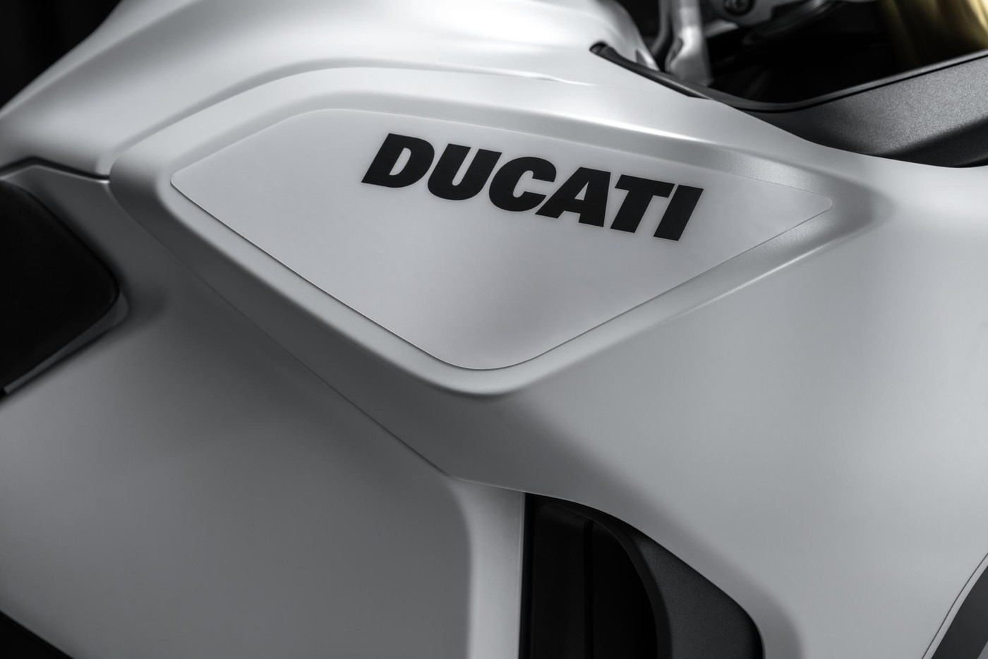 | Standartní výbava | Ducati Quick Shift (DQS) up/down 2.0, Lithium-ion baterie, tlačítka rychlé volby, funkce Coming Home, tempomat, TFT display, Full LED světla, Denní svícení (DRL), Dynamická LED směrová světla, automatické vypínání směrových světel, Lap timer, dva USB porty |