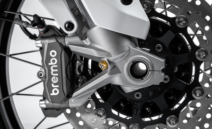 | Přední brzdy | 2x 305mm poloplovoucí kotouče, 4 pístkové radiální třmeny Brembo M4-32 Monoblock, Cornering ABS |
