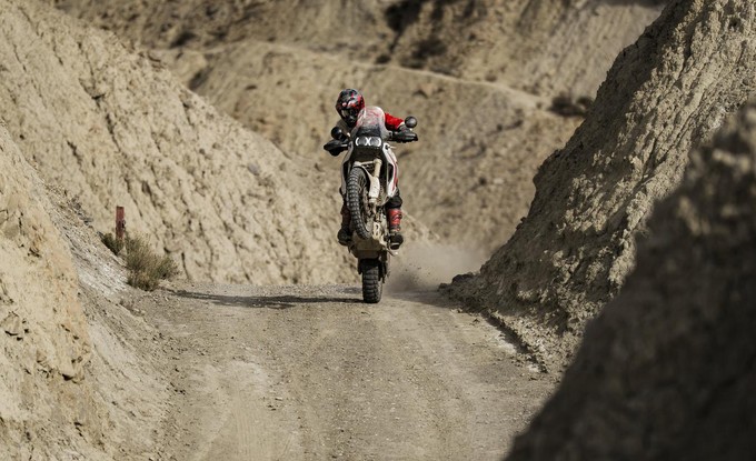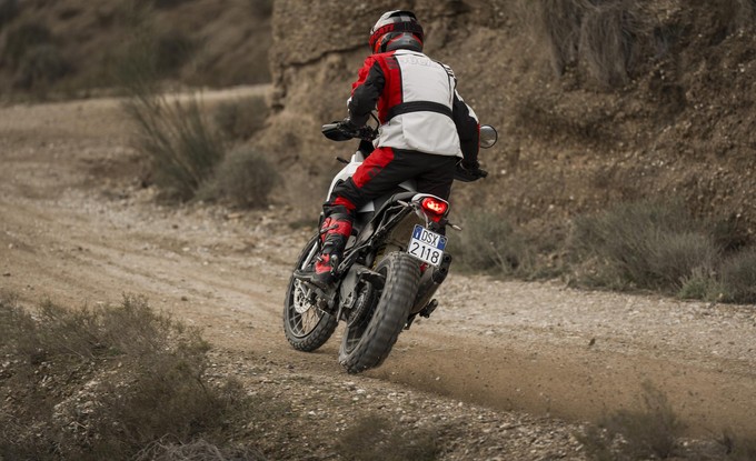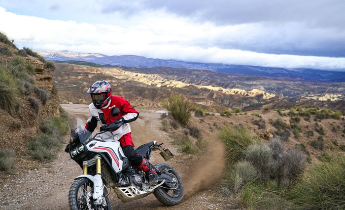 Ergonomie podporuje přirozenou off-road pozici: široká řídítka, užší tvar motocyklu mezi nohama a posunuté stupačky, sedlo a řídítka umožňují aktivní a přesnou jízdu. Nádrž 18 l usnadňuje pohyb na sedle a integrované crash pady chrání motocykl i při pádech v nízké rychlosti.