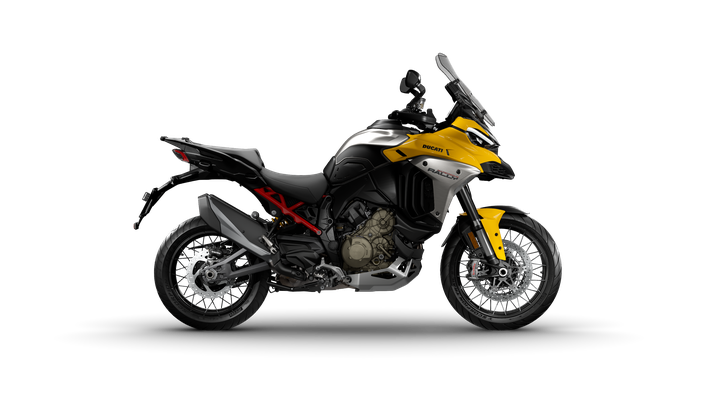 Nová Multistrada V4 Rally je ideálním společníkem na cesty, který vás vezme na cestu do neprobádaných končin s důrazem na pohodlí a všestrannost. 30litrová nádrž, odpružení s dlouhým zdvihem a pokročilá výbava pro vaše další dobrodružství. Ať už jedete sami nebo ve dvojici, Multistrada V4 Rally je připravena na všechno a snadno se přizpůsobí jakémukoli terénu a stylu jízdy. Definice neomezeného cestování.