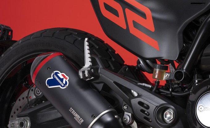 Závodní ladění evokuje ochranný kryt motoru, nízká řídítka, kratší přední blatník, absence zadního blatníku a zlatá barva na ráfcích. Sportovní estetika je zdůrazněná speciální grafikou Heritage, homologovaným výfukem Termignoni, grafikou sedla a novými efektními bočními panely s ikonickým číslem 62.